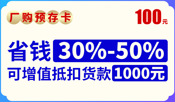 预存卡是参加工厂直购享受源头厂价的必要凭证,请在报名后在线购买此卡锁定名额。